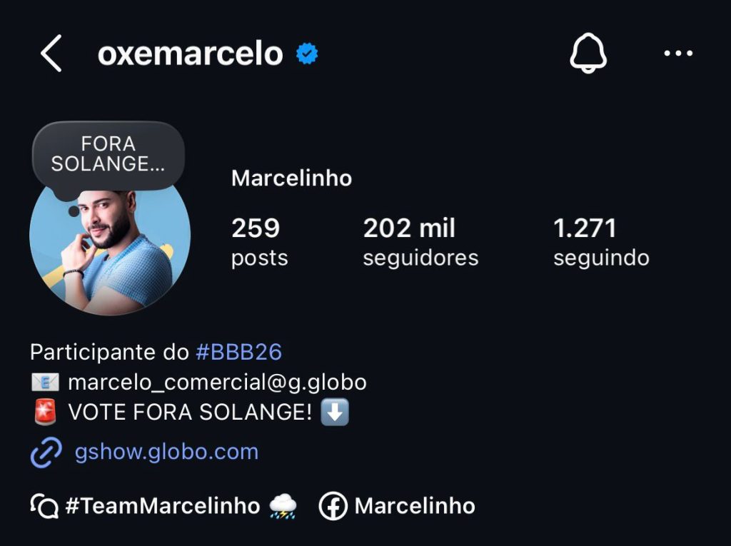O participante Marcelinho alcançou a marca de 200 mil seguidores nas redes sociais enquanto segue confinado no Big Brother Brasil 26. A marca foi alcançada nesta segunda-feira, véspera de resultado do paredão do brother com Solange e Samira.