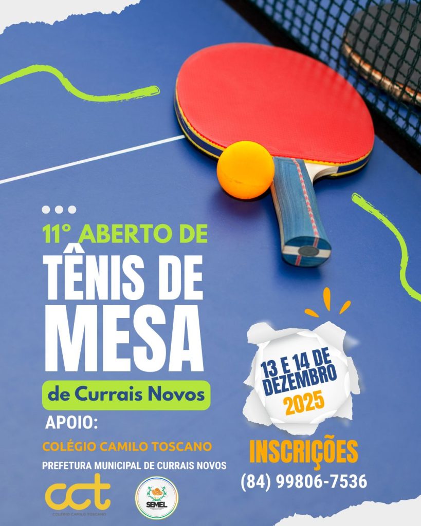 A cidade de Currais Novos se prepara para receber mais uma edição de um dos eventos esportivos mais tradicionais da região: o 11º Aberto de Tênis de Mesa, que será realizado nos dias 13 e 14 de dezembro de 2025.