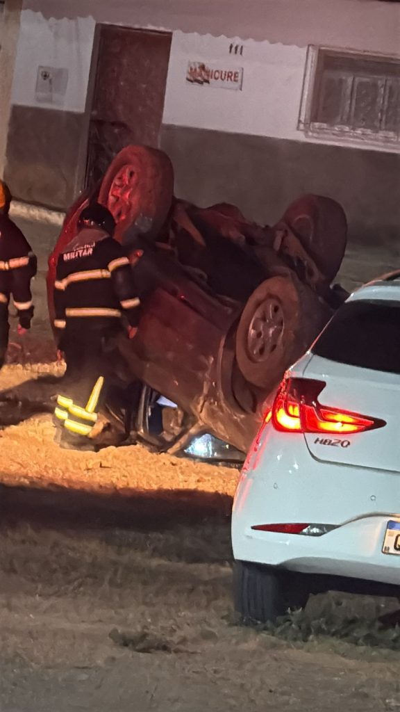 Ideia brilhante: carro capota após motorista tentar dar ‘cavalo de pau’ em rua de Currais Novos