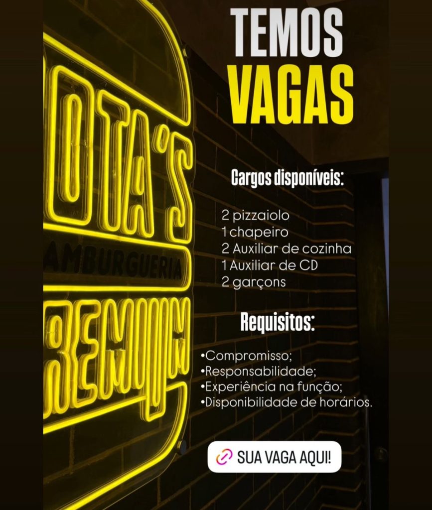Entre os requisitos, a hamburgueria destaca a importância do compromisso, responsabilidade, experiência na função e disponibilidade de horários.