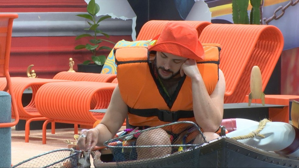O médico foi o primeiro a participar da dinâmica, após ser indicado por Jonas, vencedor da 1ª Prova do Anjo. O brother está desde sábado (17) com um colete salva-vidas e cumprindo a missão de tirar água de uma canoa usando pequenos recipientes. No entanto, de hora em hora um dummy entra na casa e derruba novamente toda a água na canoa.
