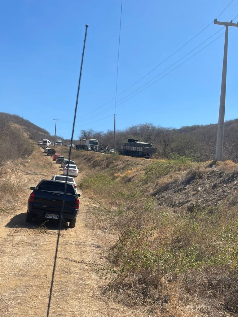Zebra grande: Carreta não consegue subir ladeira, fica atravessada e prejudica trânsito em rodovia entre Currais Novos e São Vicente
